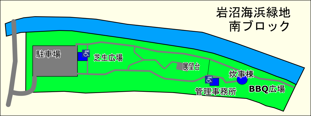 岩沼海浜緑地(ジュニパーク岩沼)はテニスコートや野球場がある北ブロックと、バーベキュー広場や大型コンビネーション遊具がある南ブロックの2つがあります。